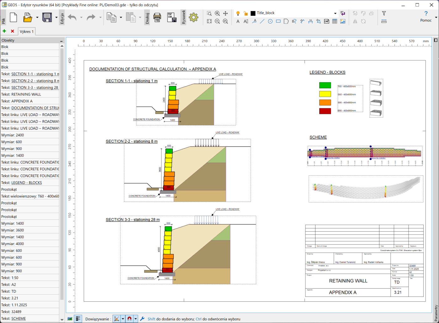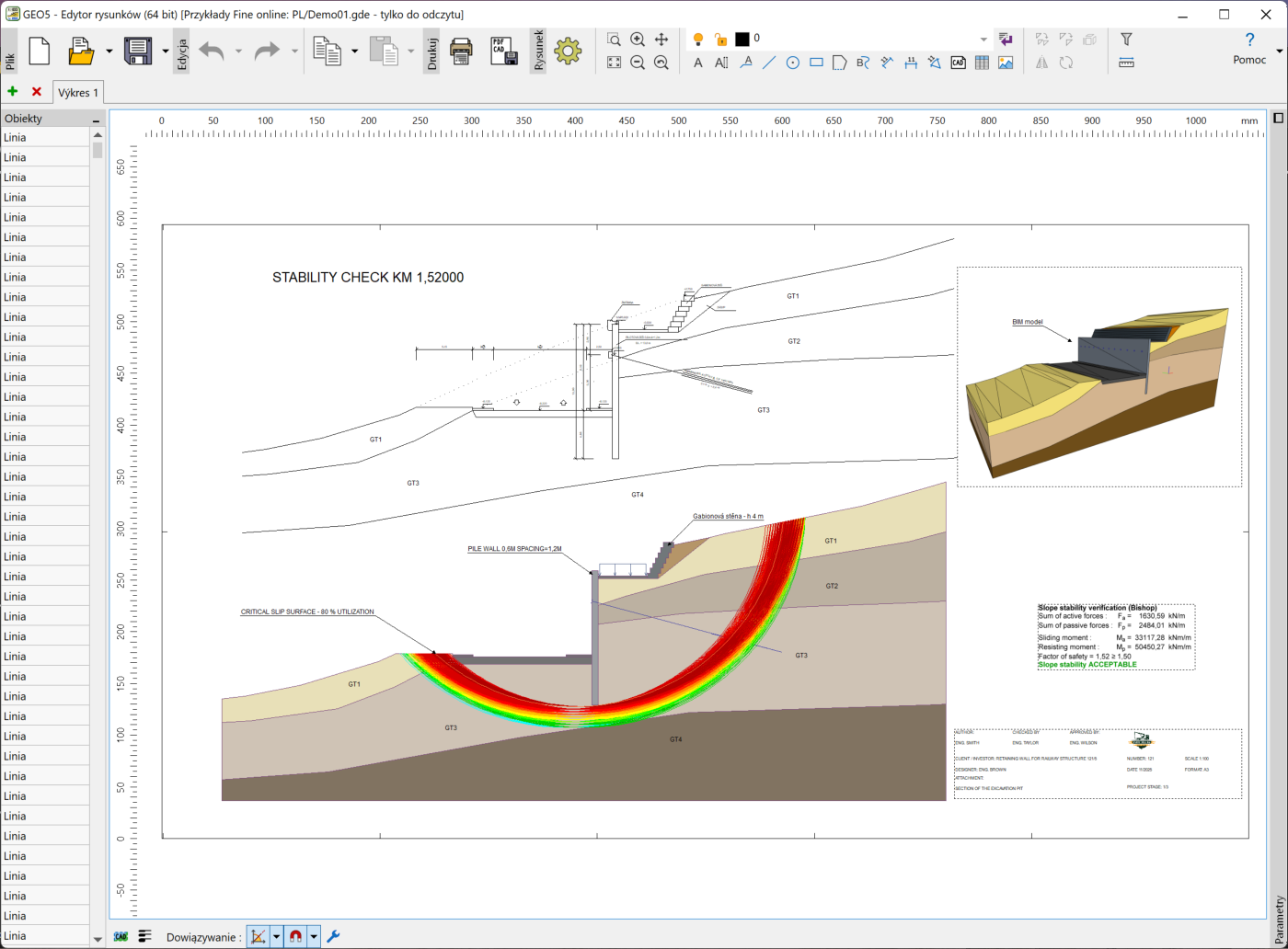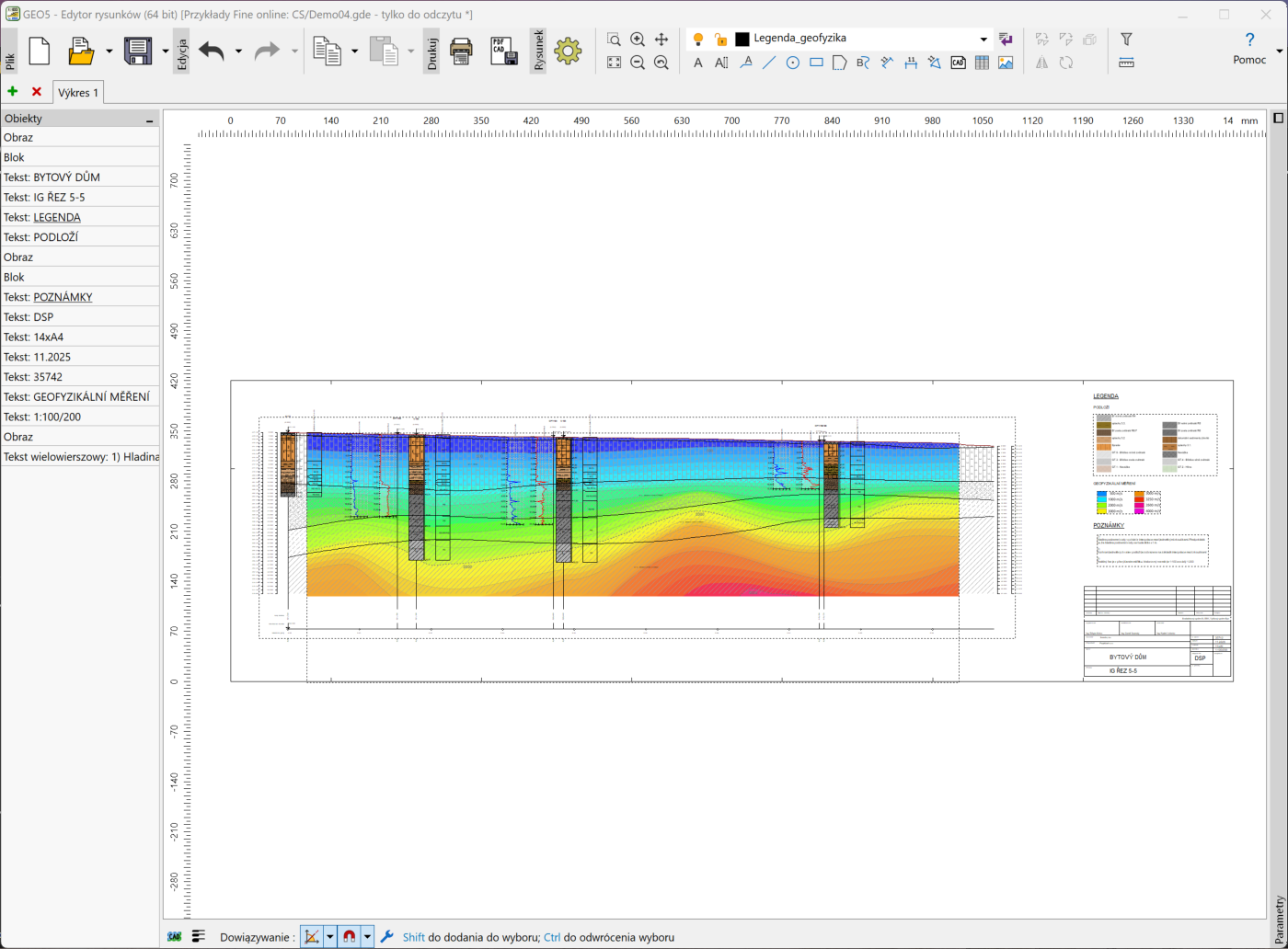 Program przeznaczony jest do tworzenia i edycji rysunków z dowolnego programu GEO5. Wszystko w jednym miejscu – bez przełączania się między różnymi narzędziami. Skraca czas opracowania rysunków i raportów, zapewnia spójny i profesjonalny wygląd wszystkich wydruków GEO5.