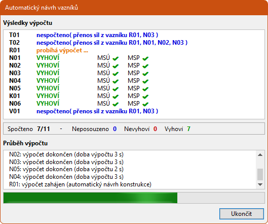Pro lepší orientaci v průběhu návrhu byl rozšířen výpis informací, který se zobrazuje při automatickém návrhu vazníků v programu "Truss 3D". Kromě přehledu aktuálního stavu počítaných vazníků jsou vypsány i závislosti založené na přenosu sil.