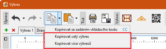 "Editor výkresů" může spravovat libovolný počet výkresů s různými měřítky a formáty. Vkládat a odstraňovat lze výkresy za pomoci tlačítek u záložek s názvy výkresů. Nástroje pro kopírování výkresů jsou umístěny v rozbalovacím seznamu u příkazu "Kopírovat do schránky". Výkresy lze kopírovat jak v rámci jednoho projektu, tak mezi projekty. Při této operaci se vždy aktualizují všechny automatické bloky (půdorys, vazníky apod.).