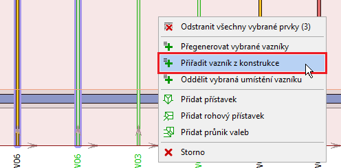 Pokud jsou v programu "Truss 3D" vybrána libovolná umístění vazníků, lze je změnit na jiný typ pomocí příkazu "Přiřadit vazník z konstrukce", který se nachází v kontextovém menu pracovní plochy.