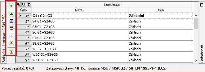Kombinace mohou vzniknout automaticky při generování kompletního zatížení v části "Generátoru zatížení" nebo mohou být vytvořeny v této části.