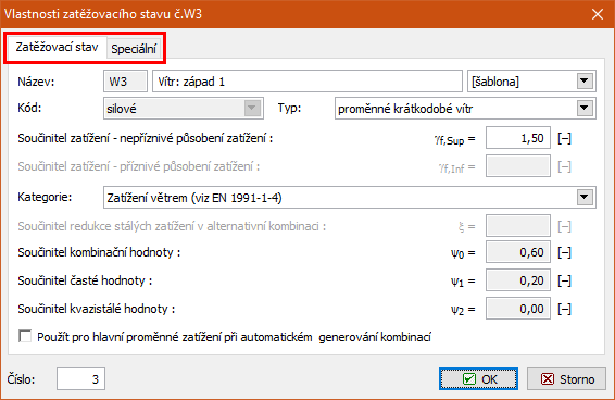 • V této části lze též zadat či změnit součinitele, které se používají při sestavování kombinací zatěžovacích stavů