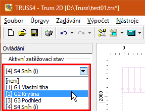 Volba aktivního zatěžovacího případu v záhlaví ovládacího stromečku