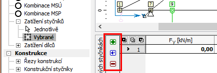 Tlačítka pro zadávání a úpravu zatížení na vybrané styčníky