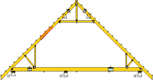 Non-structural components can be used to model secondary parts of trusses. These are members that are not included in the structural analysis and therefore do not contribute to the overall load-bearing capacity of the truss. They should therefore only be used for secondary elements or elements with significant weakening that cannot perform a load-bearing function. Examples include slope wedges and similar elements. Structural components are drawn in grey on the workspace.
